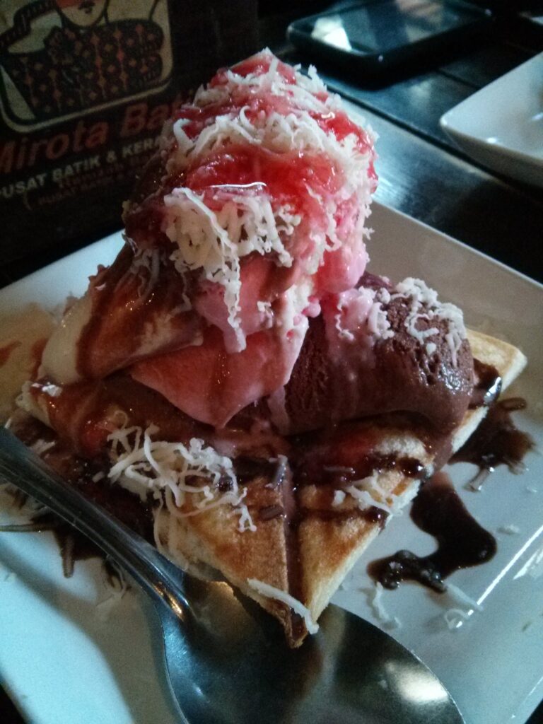 Hari terakhir liburan. T__T Lokasi pertama yang dikunjungi adalah Pabrik Cokelat Monggo. Harapannya bisa lihat proses pembuatan coklatnya di workshop, tapi sayangnya saat kami datang mereka belum mulai kerja. Akhirnya cuma beli cokelatnya saja disini.