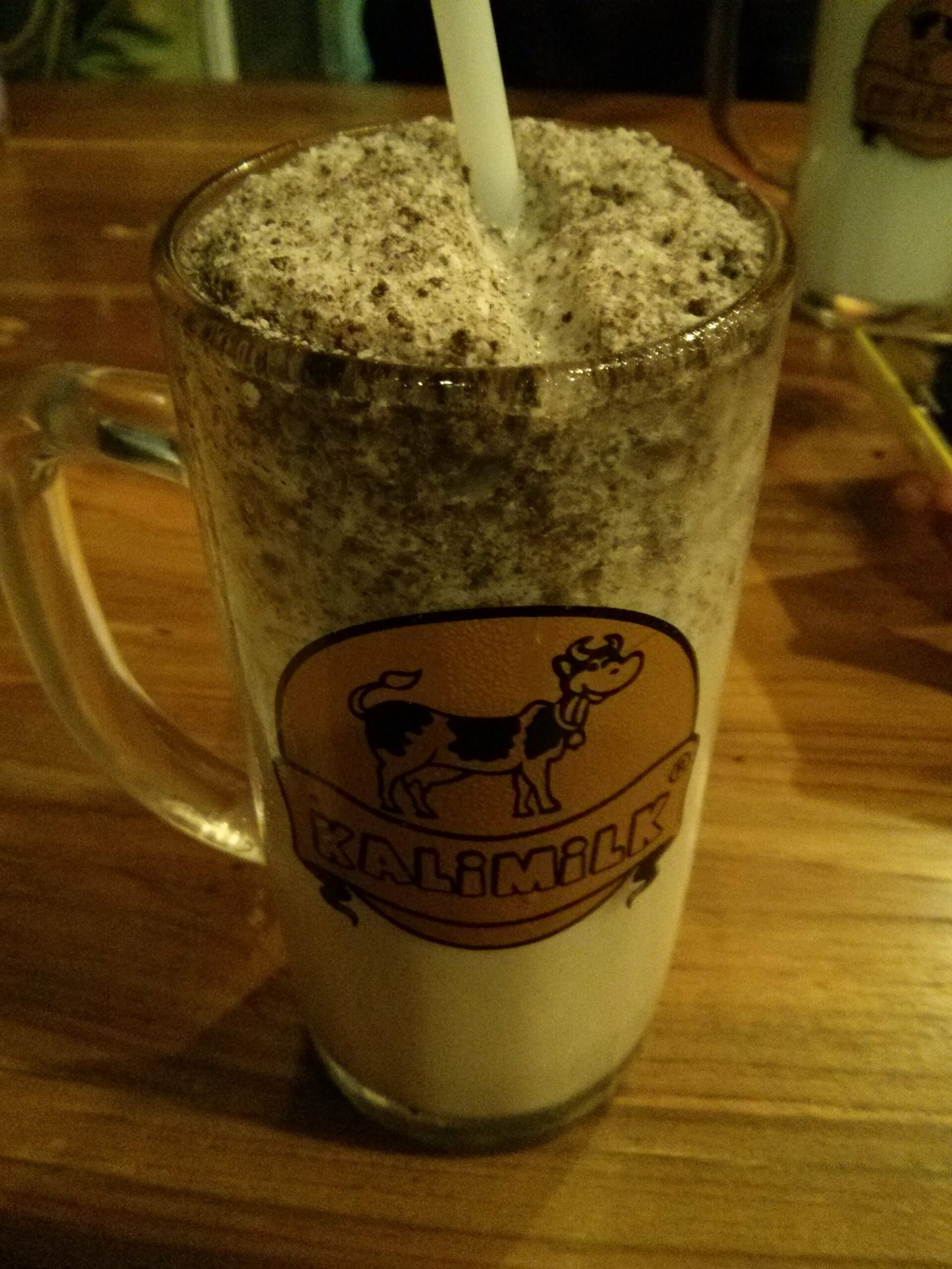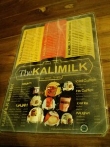 Setelah dari Taman Pelangi, kami meluncur ke Kalimilk yang ada di Kaliurang. Kalimilk ini salah satu tempat gaul nge-hits di jogja. Menu utamanya adalah susu dengan berbagai macam rasa. Saking nge-hitsnya, kami pun harus masuk waiting list dulu untuk bisa nyusu disini. Setelah menunggu beberapa saat, kami pun mendapatkan tempat. Di Kalimilk, ada 2 ukuran gelas yaitu medium dan gajah. Sesuai namanya, ukuran gelas gajah ini sangat besar. Harga susu disini sekitar belasan ribu. Selain susu, ada juga light meal seperti chicken wings, risoles, french fries, macaroni & cheese. Untuk yang agak berat, ada chicken blackpepper & beef teriyaki. Saya pesan kalimilk cookies yang ukuran medium saja karena masih cukup kenyang.
