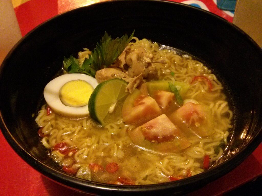 Hari ini hari khusus pantai. Akan saya tulis dalam 1 post khusus juga. 😀 Ceritanya malam harinya aja ya. Jadi, di jogja ada tempat makan hits yang namanya Telap 12 (baca: telap twelep). Kalo bahasa jawa, itu ungkapan buat yang makannya lahap. Nah, si Telap 12 ini menjual mie instan, iya bener mie instan, yang disajikan persis sesuai bungkusnya. Penasaran dong pastinya. Kami kesana bareng orang tuanya ananti juga. Sayangnya karena sudah malam, menu yang tersisa tinggal rasa soto dan rendang. Tapi karena sudah terlanjur kesana, kami pun memesan apa yang ada saja. Ini dia tampilannya: