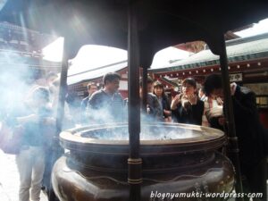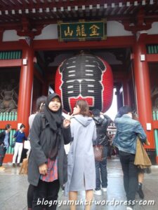 It was my 4th day. RP had 2 fansigns that day, but I’ve had enough CDs and only had 2 more days in Tokyo before moving to Kyoto. So, I started my tourist mode. My first destination of the day is Asakusa area. I went to Sensoji Temple and Asakusa Shrine. Near the Kaminarimon gate, there’s Nakamise Shopping Street where we can find a lot of food and unique stuffs for omiyage (souvenir). When I was taking picture near Kaminarimon gate, someone approached me and asked if I’m Indonesian. And we ended up taking picture for each other. Haha. Her name is Mbak Dewi and currently taking course in Nara Woman University. She was also there by herself. But too bad she already entered the temple area and need to move to next destination, so we can’t travel around together. But we exchanged facebook friend request. Hehe.
