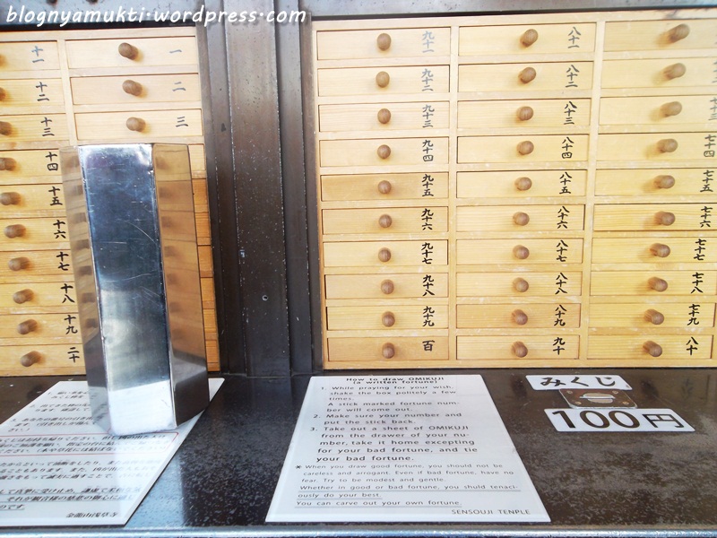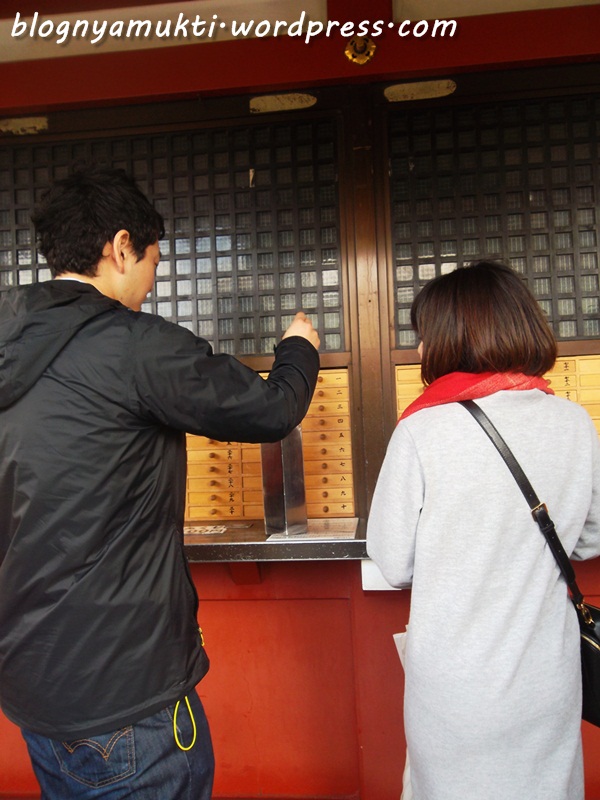In Sensoji (and some other temple too), people can draw omikuji to check their fortune. If they get bad luck, they need to tie the result and leave the bad luck there. That’s quite interesting for me. I didn’t try it, though. Haha.