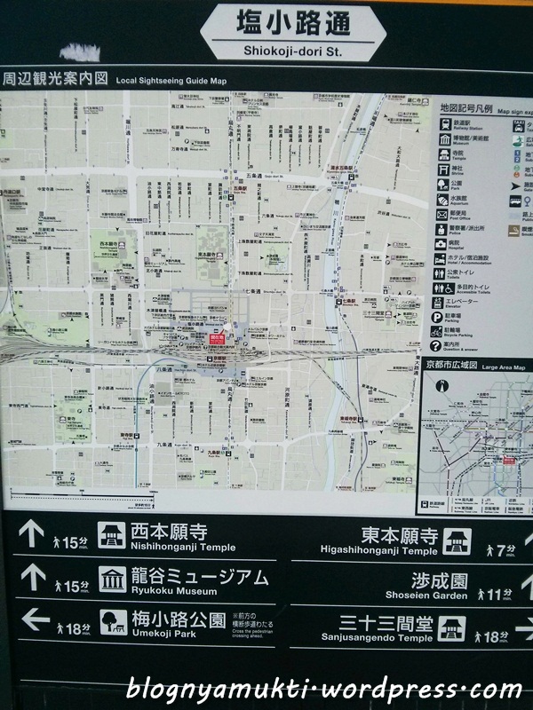 When I walked around the station, I found map of station area. I saw that there are several interesting places such as temple and park nearby. So I followed that map. When I walked out the station, I saw Kyoto Tower. Man, I didn’t even know that it’s just across Kyoto Station. Haha.