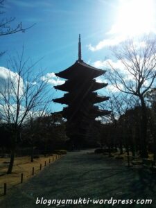 Then I walked again to Umekoji Park. The Kyoto Aquarium is within the area, but I didn’t have plan to go there. I just walked around the park and having some morning sun because the weather was still a bit cold. When I walked to the park, I saw a pagoda. And when I checked on the map, it should be in Toji Temple which mentioned as World Cultural Heritage Site. So, I was curious and decided to go there.