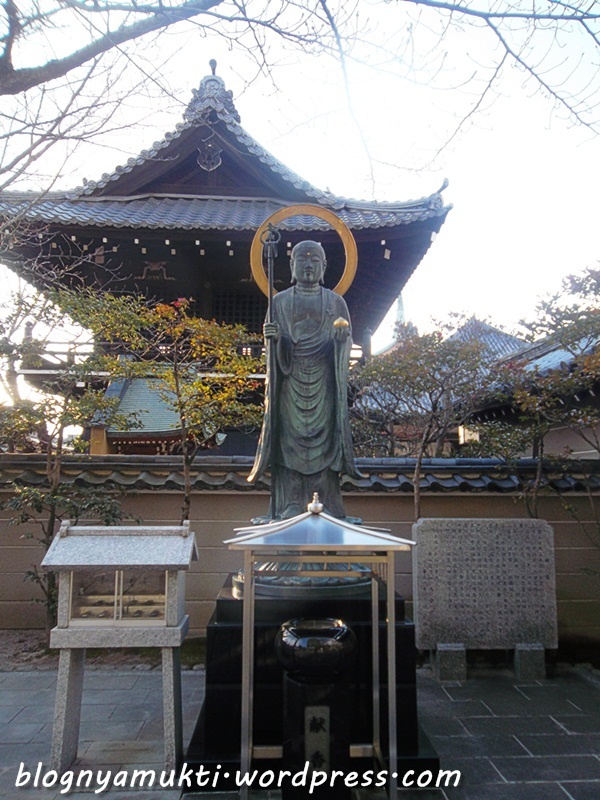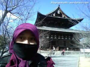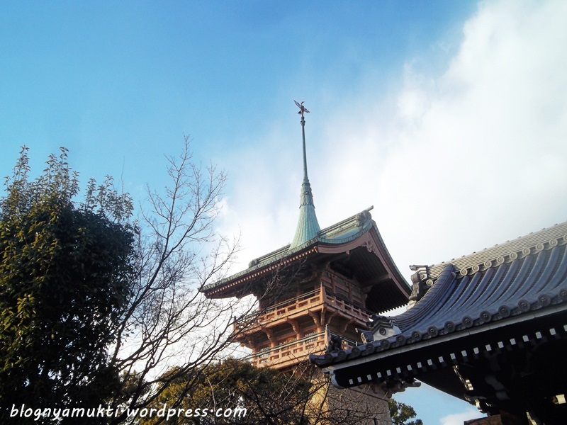 When I arrived at the temple, turned out there’s entrance fee. At the end, I entered the temple because it’s said that there’s English volunteer guide inside. So at least I can get some explanation. The entrance fee is 800 yen (special price for pagoda opening day, normal day costs 500 yen). I met the guide near the 5-story pagoda. She explained about the Kyoto history and why the temple was built. She also explained the pagoda structure which called snake structure. Tokyo Skytree Tower is said using the same structure as this pagoda. This pagoda is also the tallest pagoda in Japan. That day was special day which we can enter the pagoda. There’s only several days in a year for this kind of event. I can consider myself lucky, then. Inside the pagoda, there are 4 Buddha statues facing 4 different directions and they have different purpose. Each statues also have 2 smaller guardian statue. Other than pagoda, there are 2 worship halls called Kondo and Kodo Hall. There was big Buddha statues inside the hall. Too bad, taking picture was prohibited inside the pagoda and hall. You can learn more about the temple here.
