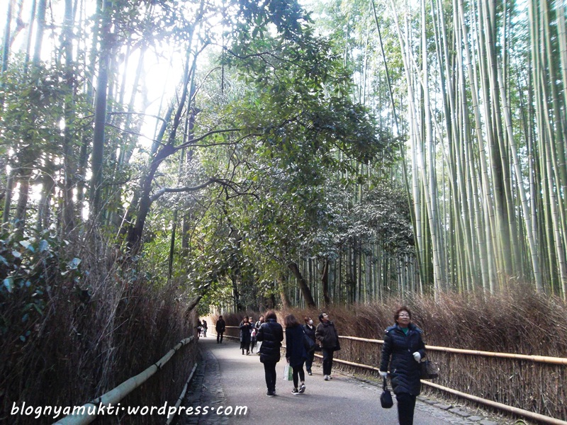 The next day, I felt a little bit better even though the fever is still there. My main plan of the day was Arashiyama and Kinkakuji (Golden Pavillion) Temple. TIC staff recommended me to visit other temples around Kinkakuji too, but I didn’t want to breakdown again so I kept on my initial plan. I arrived at Arashiyama around 1pm, I walked through direction to Bamboo Forest Path. When I finally found the bamboo, I thought it’s not that special. But I kept walking and finally found the main part. And yasss! It’s soooo pretty! The bamboo is kinda different from the one I saw earlier, tho. There are temples nearby, but I just passed by since I don’t really know the difference. They all look the same to me, especially on pictures. Haha.