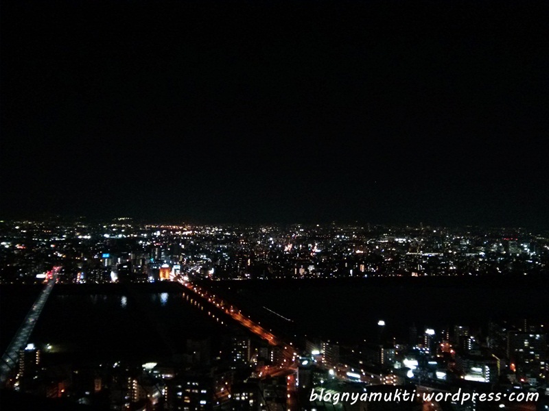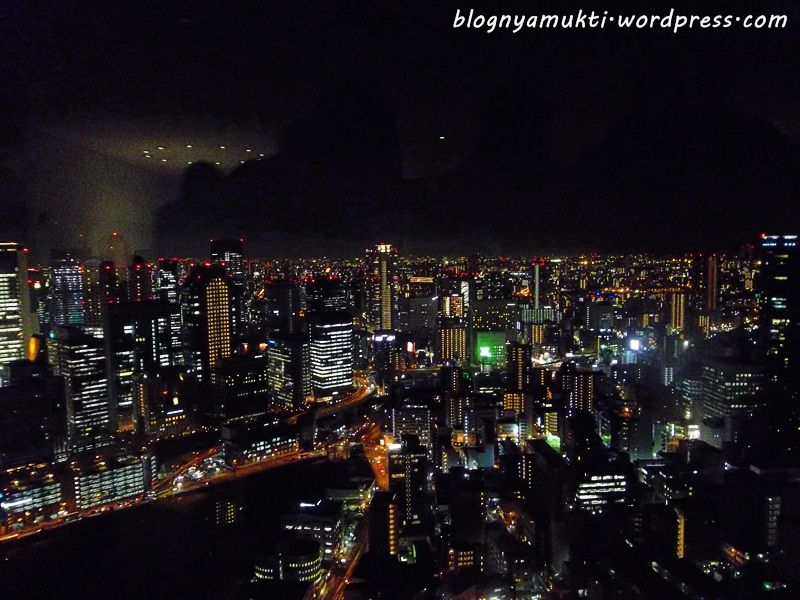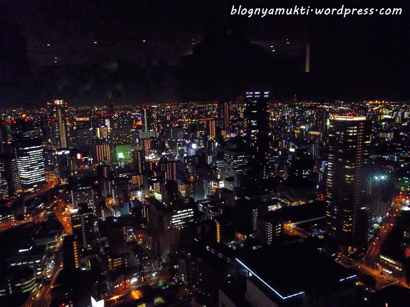 When the sun started to set, I went to Umeda Sky Building. There was queue to take the elevator to the observation. I think I arrived there on the right time. The queue wasn’t that long. There’s also long escalator to reach the observation deck. The Osaka night view from the top was beautiful. There’s also cafe there. So, I bought cheesecake. When I finally went down, the queue for the elevator was superrr long. Glad that I didn’t need to experience that!