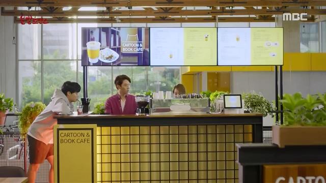 There’s cafe in the office area that owned by Ryangha. Apparently, it’s not a real cafe. The set is temporary built in the first floor of NHN Entertainment building office for the drama. The cafe franchise, Nolsoop, sponsored this drama.