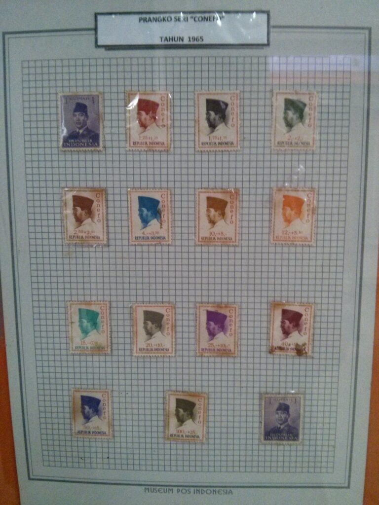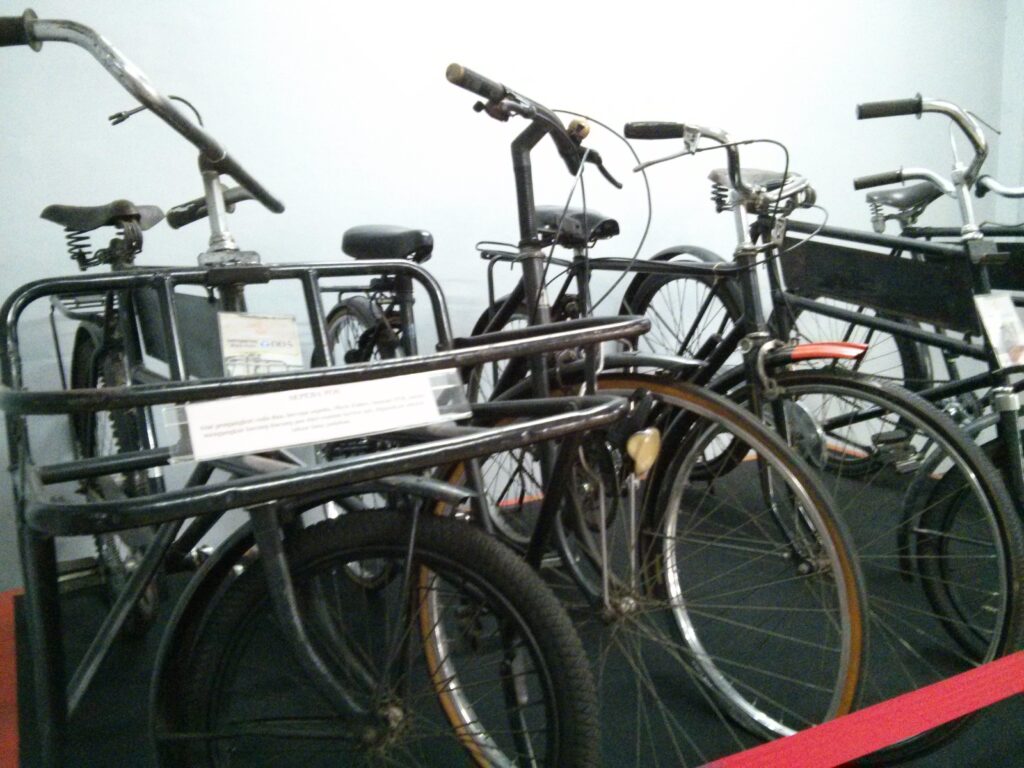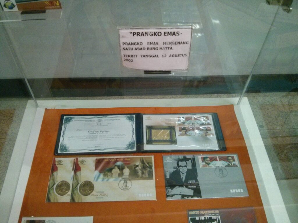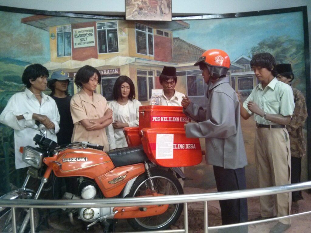 Belok kiri dari situ kita bisa melihat sepeda jaman dulu yang dipakai sebagai sepeda pos. Di dekat situ ada juga koleksi perangko emas yang dibuat untuk memperingati meninggalnya ibu tien soeharto dan presiden soekarno, serta 1 abad bung hatta. Ada koleksi mesin cetak alamat juga. Dan yang paling mencolok, ada diorama pos keliling desa yang ukurannya 1:1. Tapi ya itu wig dan tampang orang-orangnya serem gitu. Haha.