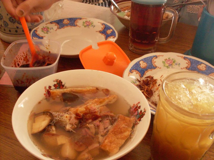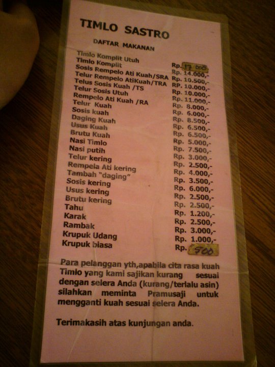 Karena bapaknya Bhella sudah pulang, kami pun dikenalkan. Dan setelah sholat dzuhur, berangkatlah saya, Mutiara, Bhella, dan adik-adik Bhella, Ira dan Aan ke Timlo bu Sastro. Timlo itu makanan khas Solo gitu. Isinya ternyata sosis solo (kayak lumpia) dikasih kuah gurih, terus bisa ditambah telor yang dibumbuin seperti dibacem, jeroan kayak ati, ampela gitu juga. Di Timlo Sastro, saya pesan Timlo Komplit, harganya 14ribu, dan Es Beras Kencur, harganya 3.500. Pas pertama di liat, kayaknya porsinya sedikit. Tapi, pas udah dimakan, itu super ngenyangin. Hahaha.. Soal rasa, ya lumayanlah walopun bukan favorit saya. ๐
