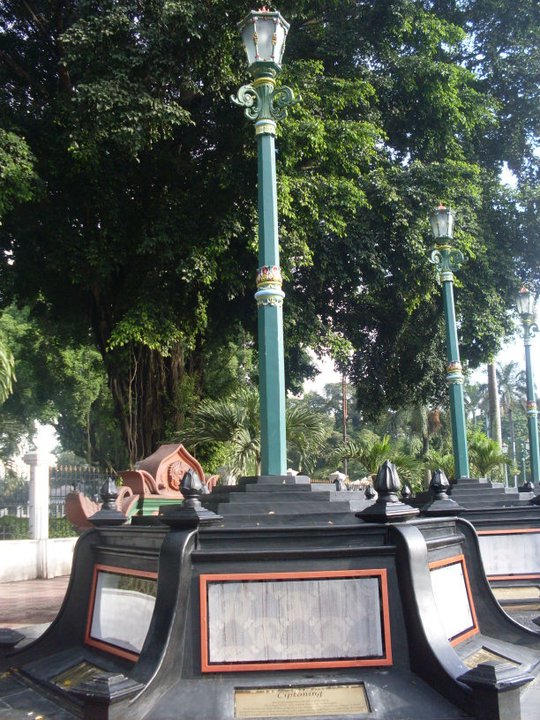 Setelah dari Tamansari, kami ke Alun-Alun yang ada pohon beringin itu. Katanya kalo bisa jalan dengan mata tertutup melewati tengah-tengah pohon beringin, harapan kita bakal terkabul. Hohoho.. Saya sih nggak mau nyobain. Disitu ada anak kecil yang emang anak sana gitu nyobain jalan dan berhasil. Hehehe, semoga harapanmu terkabul Nak. ๐