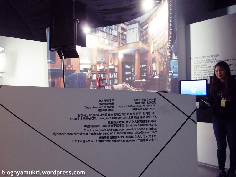The famous Do Minjoon’s library is in front of the time slice area. We can sit and take picture on the library. A professional photographer will also take our picture. And if we like the result, we can print it with additional 5000 KRW. We can ask for the soft copy too. (That’s what I did xD) The staff was really helpful. He can speaks English, Chinese, and a little bit of Japanese.