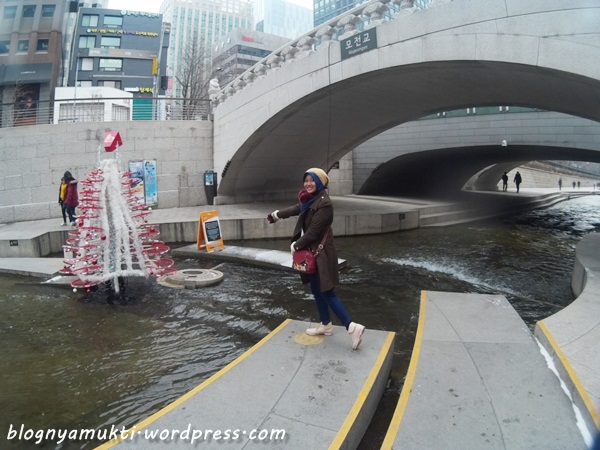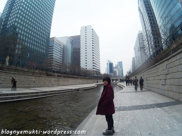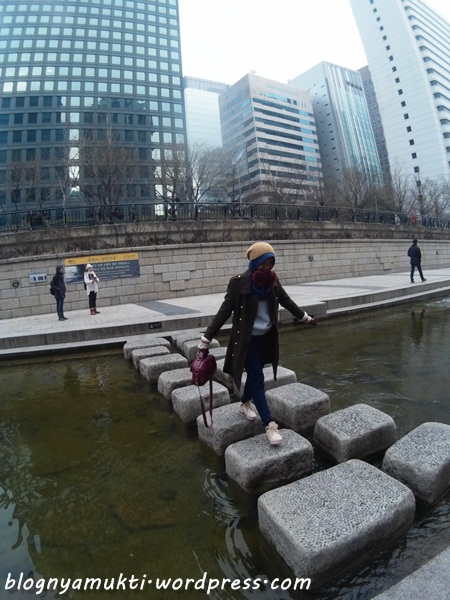 Apa sih Cheonggyecheon? Simpelnya sih sungai buatan. Versi panjangnya bisa dibaca disini. Kalo dateng pas suhu nggak terlalu dingin, enak banget duduk-duduk di pinggir sambil nyelupin kaki disini. Kalo dateng sekitar bulan Oktober, disini bakal ada Lantern Festival. Rute rekomendasi: Cheonggyecheon Plaza yang ada ikon kerang spiral gede warna biru, jalan ke arah air terjunnya. Nggak jauh dari situ ada palseokdam (wishing well), silahkan kalo mau lempar koin ke sana. Haha. Jalan terus sampe ketemu deretan batu yang jadi jembatan. Selanjutnya terserah mau lanjut apa nggak. Hehe.