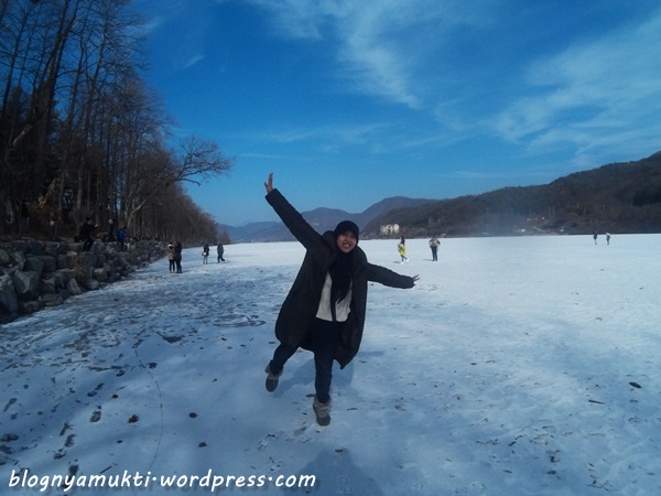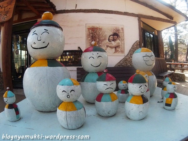 Ini nggak di Seoul sih sebenernya, sekitar 2 jam dari Seoul. Tapi kayaknya udah 1 paket, kalo ke Seoul mesti juga kesini. Nami Island ini tempat syutingnya Winter Sonata. Kalo kesini, foto bareng deh sama patungnya Bae Yongjun & Choi Jiwoo. Karena kemarin kami kesana pas masih winter, sungai di sekitar Nami Island beku! Kami bisa jalan di atas sungai yang jadi es, sebelum akhirnya ditegur petugas suruh naik. Haha.