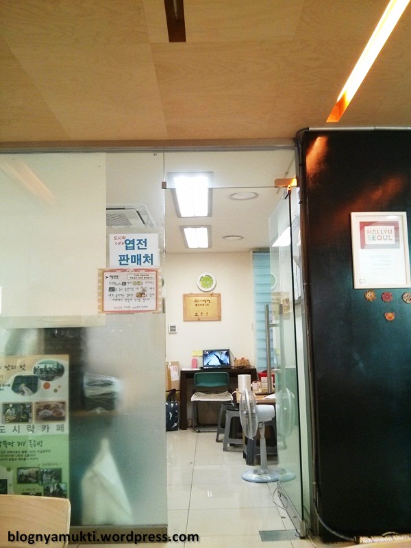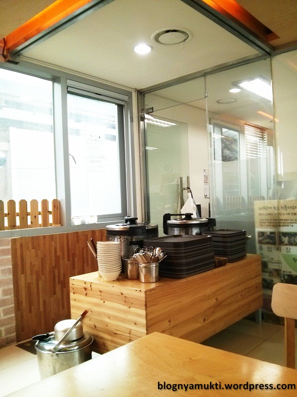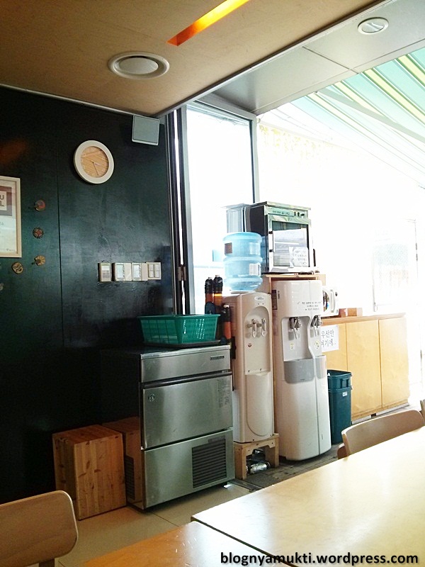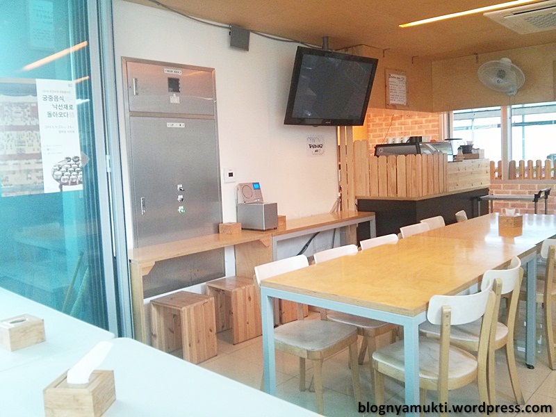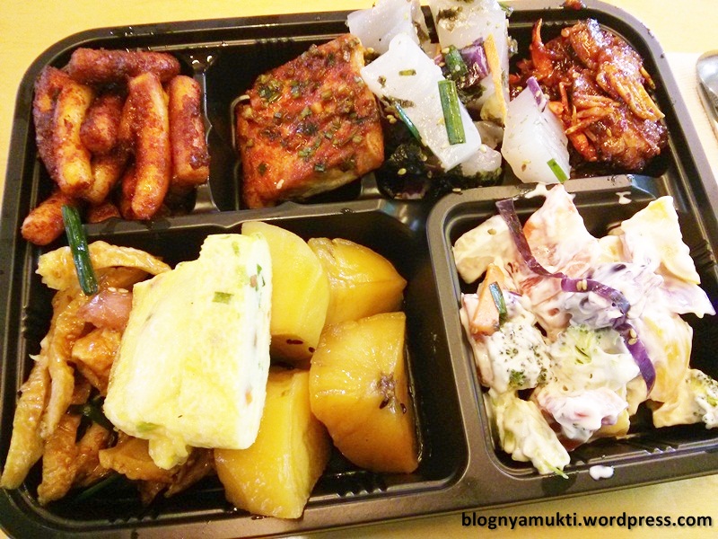 Most of the sellers here don’t speak english. But at least they can tell you how many coin you need to pay. After you fill up your lunch box, you can go back to the Dosirak Cafe. There are rice, spoon, chopstick, and water available. Just take them, choose your seat, and enjoy your meal. 😀