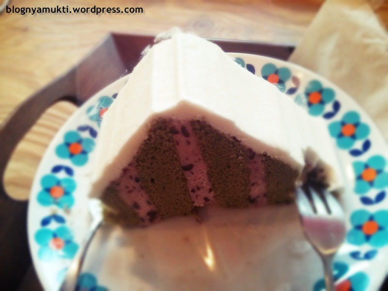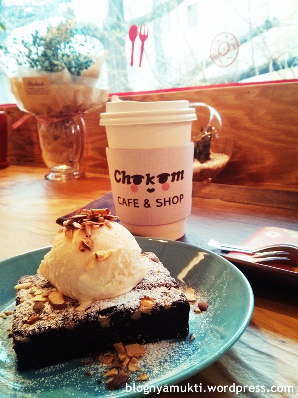 The cafe called Chokom Cafe & Shop. It’s located near Kyunghee University. When I went there, Yoseob’s mom was at the café too. Whoaa! I ordered triangle green tea cake and my friend ordered choco brownies. The price is around 5000 KRW, not so different from other cafes here. And the cake tastes good, too.